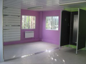 Cet espace de vente sera équipé d’une zone de stockage (bleue), d’une zone vente de produits alimentaires (verte), d’une zone vente de produits non-alimentaires (fuchsia), d’une zone accueil/encaissement (grisée). Il est également prévu des dispositifs PMR (personnes à mobilité réduite).