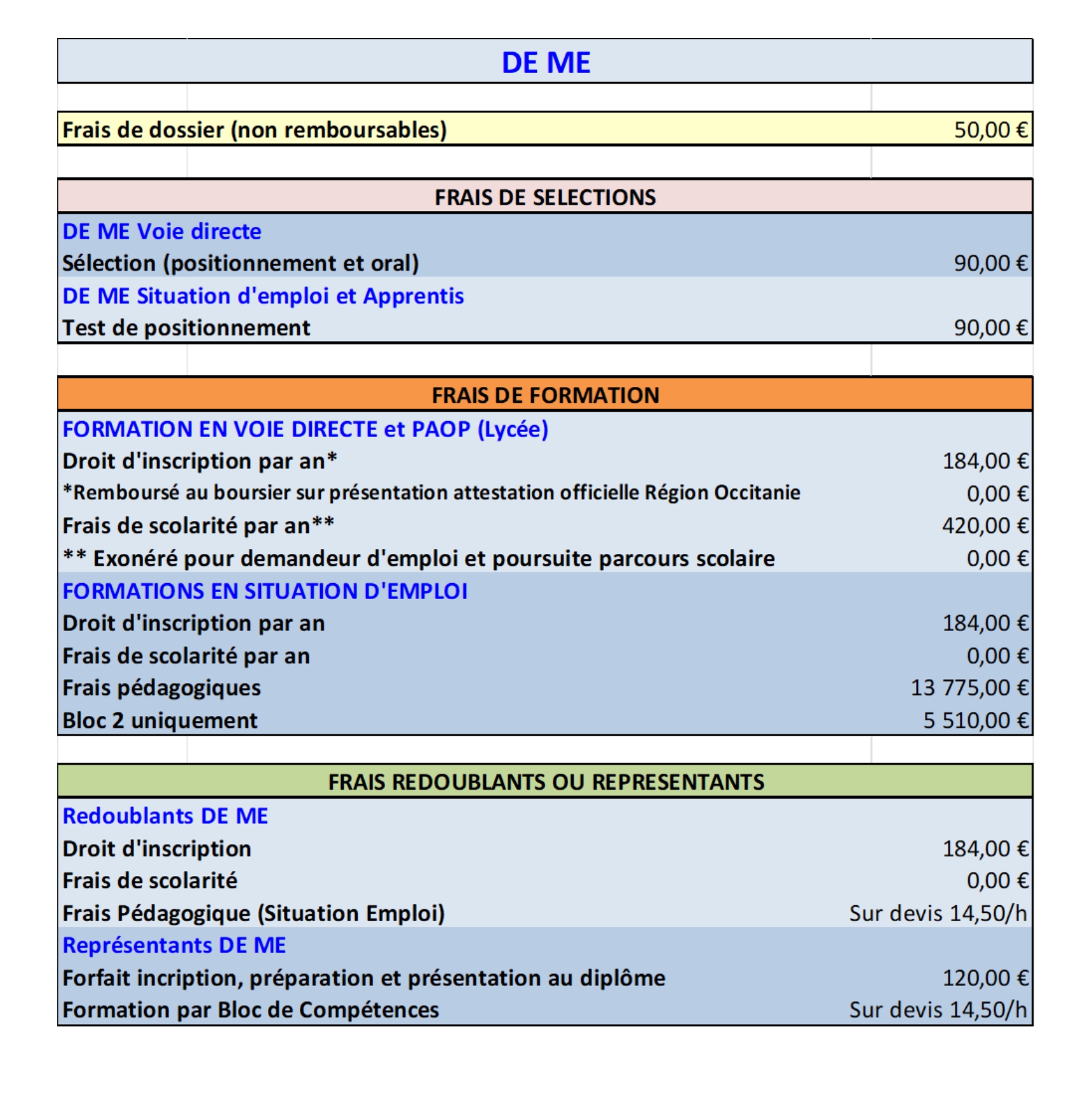Conditions d’admission à la formation au DE ME